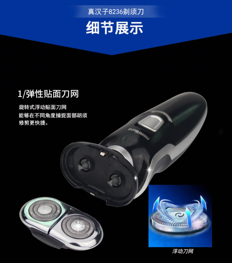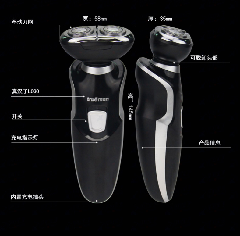 雙頭浮動式剃須刀-寧波真和電器股份有限公司,研發(fā)、制造、銷售各類電動剃須刀、電推剪、毛絨刀、電吹風、美容器具等