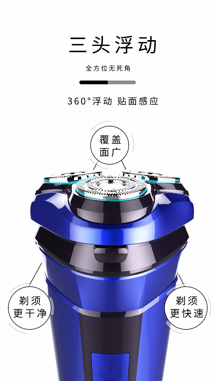 浮動三刀頭-寧波真和電器股份有限公司,研發(fā)、制造、銷售各類電動剃須刀、電推剪、毛絨刀、電吹風(fēng)、美容器具等